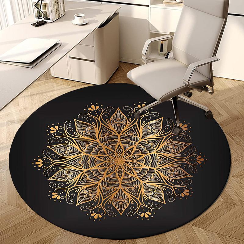 1pc Golden Mandala Design Round carpet, Made of Polyester,Perfect for Decorating Office Chairs, Living Rooms,Vibrant Decorative Rug