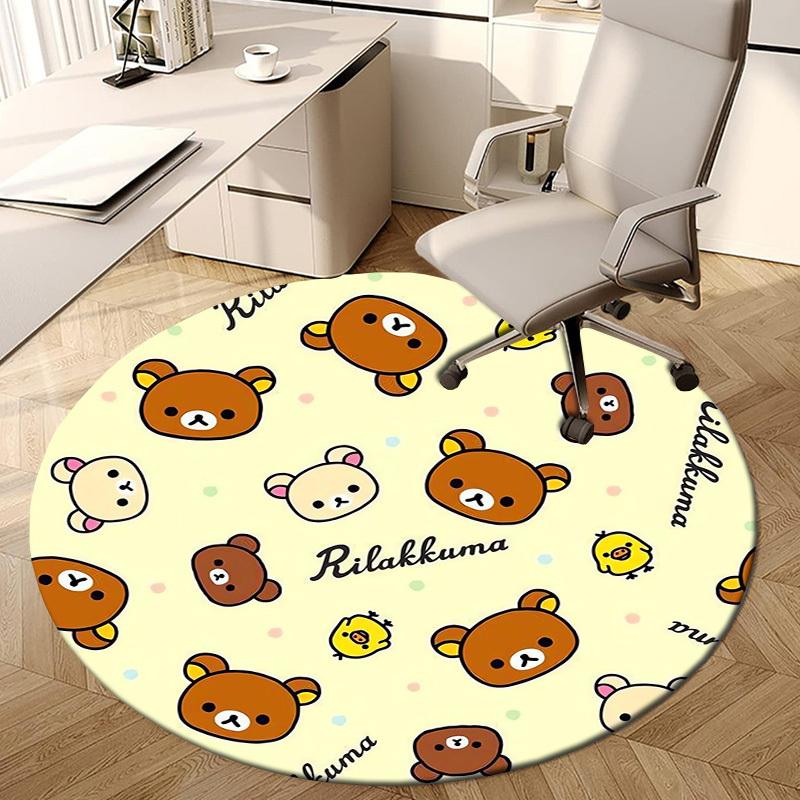 1pc Rilakkuma Pattern Cute Animals Round carpet, Made of Polyester,Perfect for Decorating Office Chairs, Living Rooms,Vibrant Decorative Rug