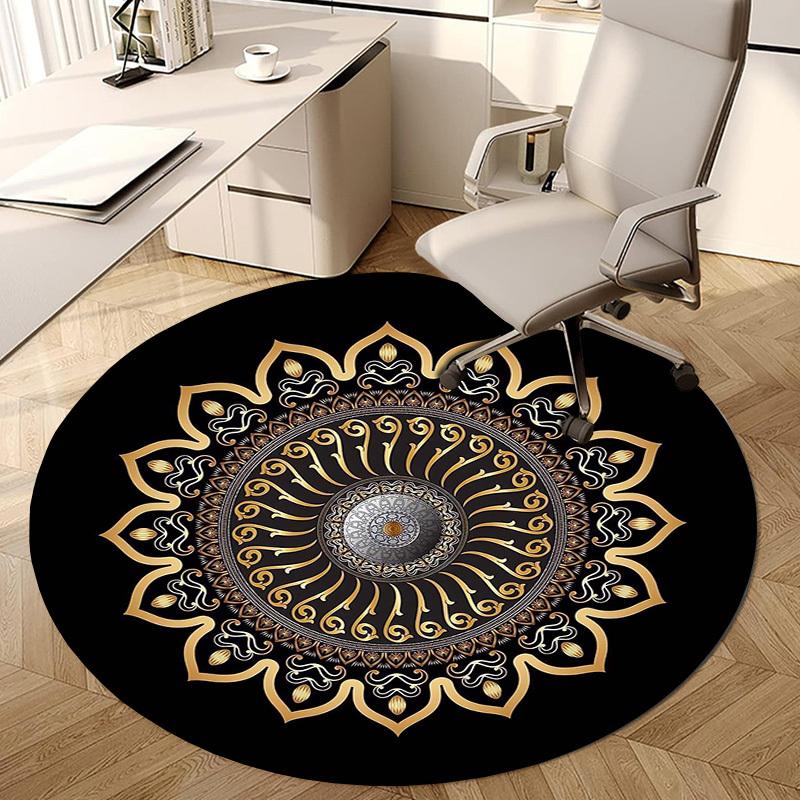 1pc Golden Mandala Pattern Round carpet, Made of Polyester,Perfect for Decorating Office Chairs, Living Rooms,Vibrant Decorative Rug