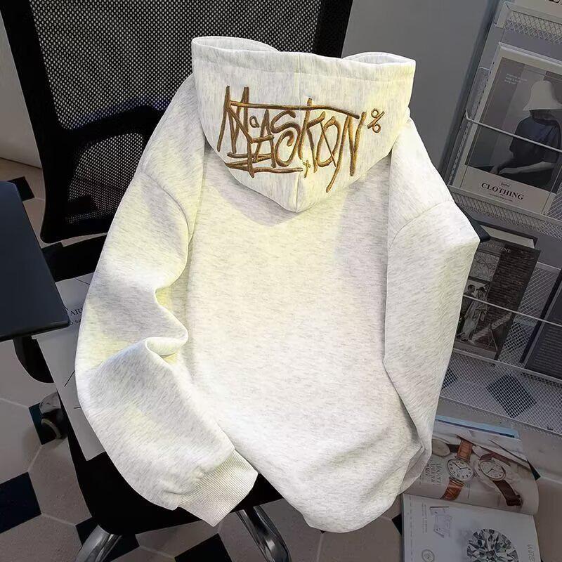 Přijměte nenucený styl s touto pánskou těžkou světle šedou mikinou s kapucí, ideální pro sezónu podzim 2025. Tato mikina s vysokým límcem a dlouhými rukávy bez námahy kombinuje pohodlí a moderní módu.. Navzdory svému těžkému názvu nabízí mikina tenkou, prodyšnou vrstvu ideální pro přechodné počasí.. Volný střih zajišťuje volnost pohybu, zatímco decentní zdobení písmen dodává nádech charakteru jeho ležérní estetice.. Tato bunda, vyrobená z kvalitních materiálů, je nezbytným základem pro každý šatník, který chce tuto sezónu dosáhnout uvolněného amerického stylu.