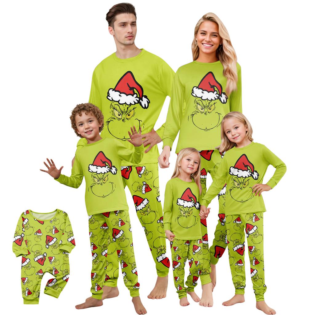 Print Cute Family Set Pajamas, Home Clothes, Family Set Long Sleeve Top Pants Set