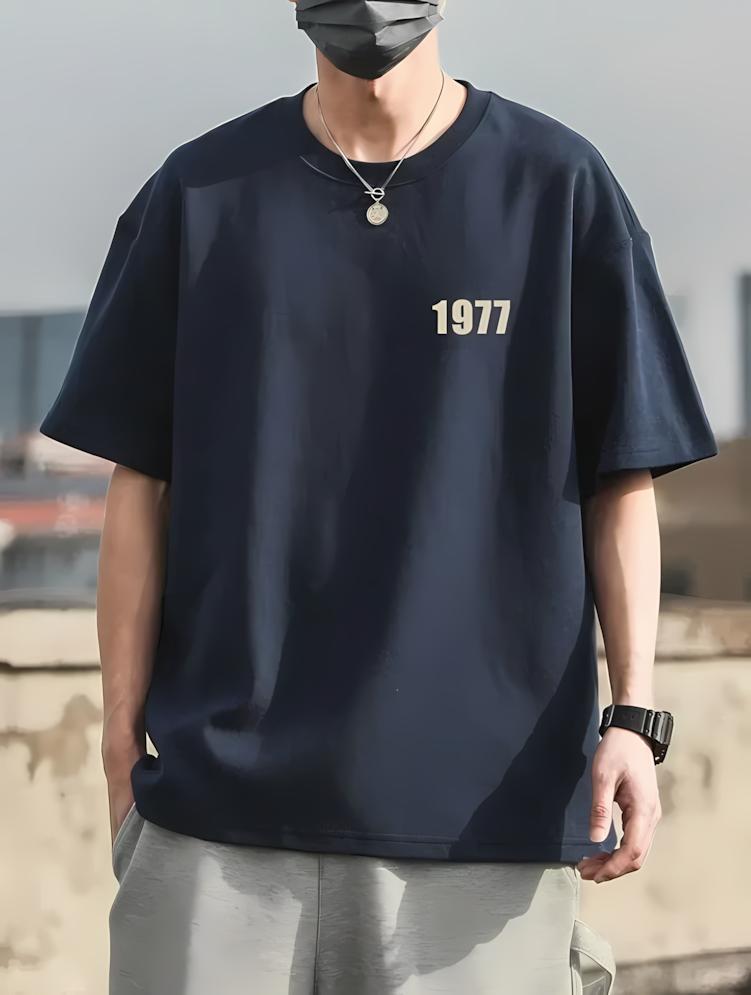 Summer Trendy Mens Retro 1977 Printed Comfortable Breathable Round Neck Tshirt Outdoor Street Style Top