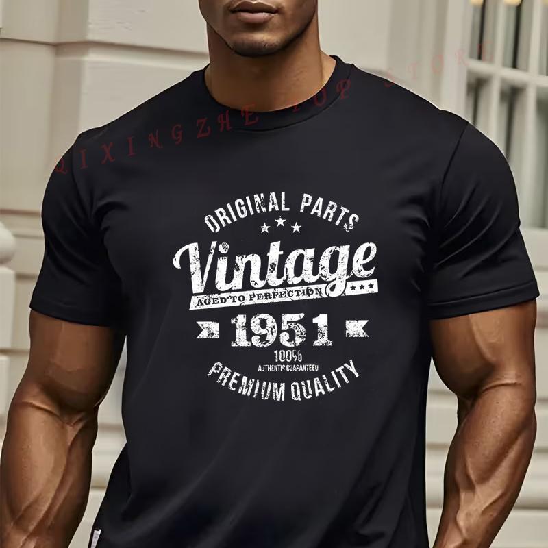 VintageYear74thBirthday1951MensTShirtBlack Vintage Style Pattern Mens And Womens Casual Comfort Short Sleeve Top Tees