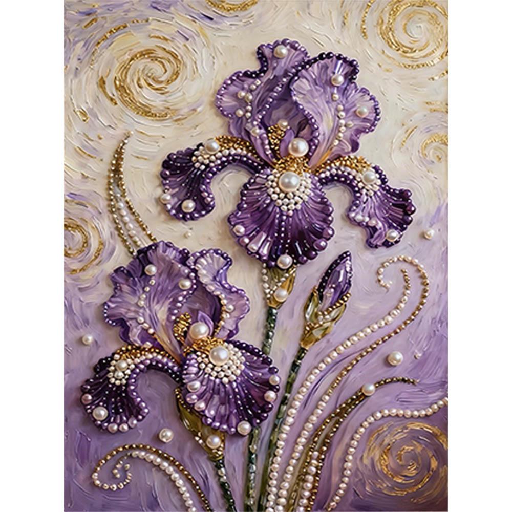 Pearl Purple Flower DIY Diamond Art Kits 15.7x19.6inch Gem Art Diamond Painting Kits Without Frame for Adults Gift Idea Home Wall Decor