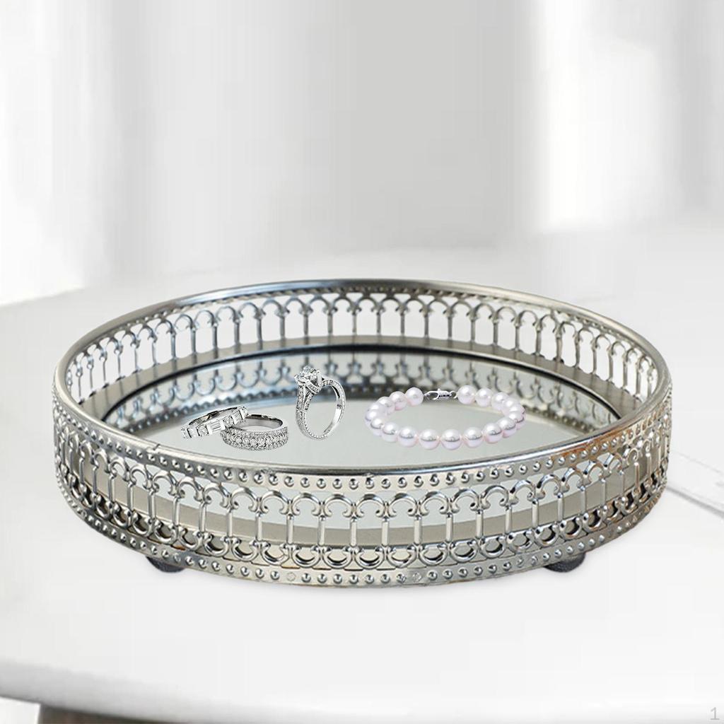 - 【Multipurpose】Great use as bathroom storage , makeup organizer or jewelry tray for storaging jewelry, vanity, cosmetic, makeup brush, perfume, flower vase or serving drinks etc. Decorating dresser, display jewelry, serving in the party, wedding centerpieces.