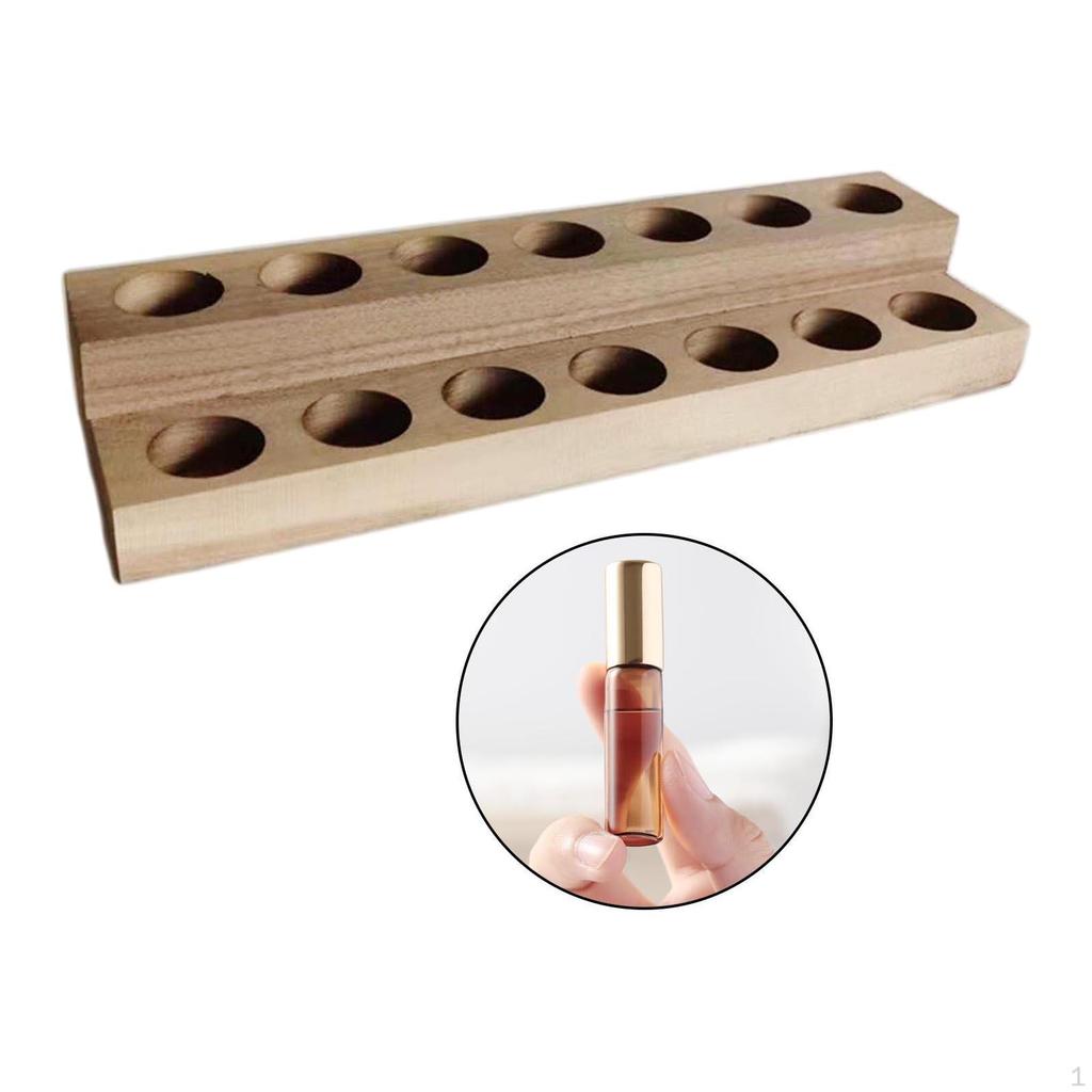 14 Holes Essential Oil Display Wooden Stand Rack Perfume Nail Polish Storage Tray Organizer