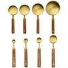 8Pcs Gold Kitchen Baking Tools Bakeware Measuring Tools Scales Set Stainless Steel Measuring Cups and Spoons With Wooden Handle