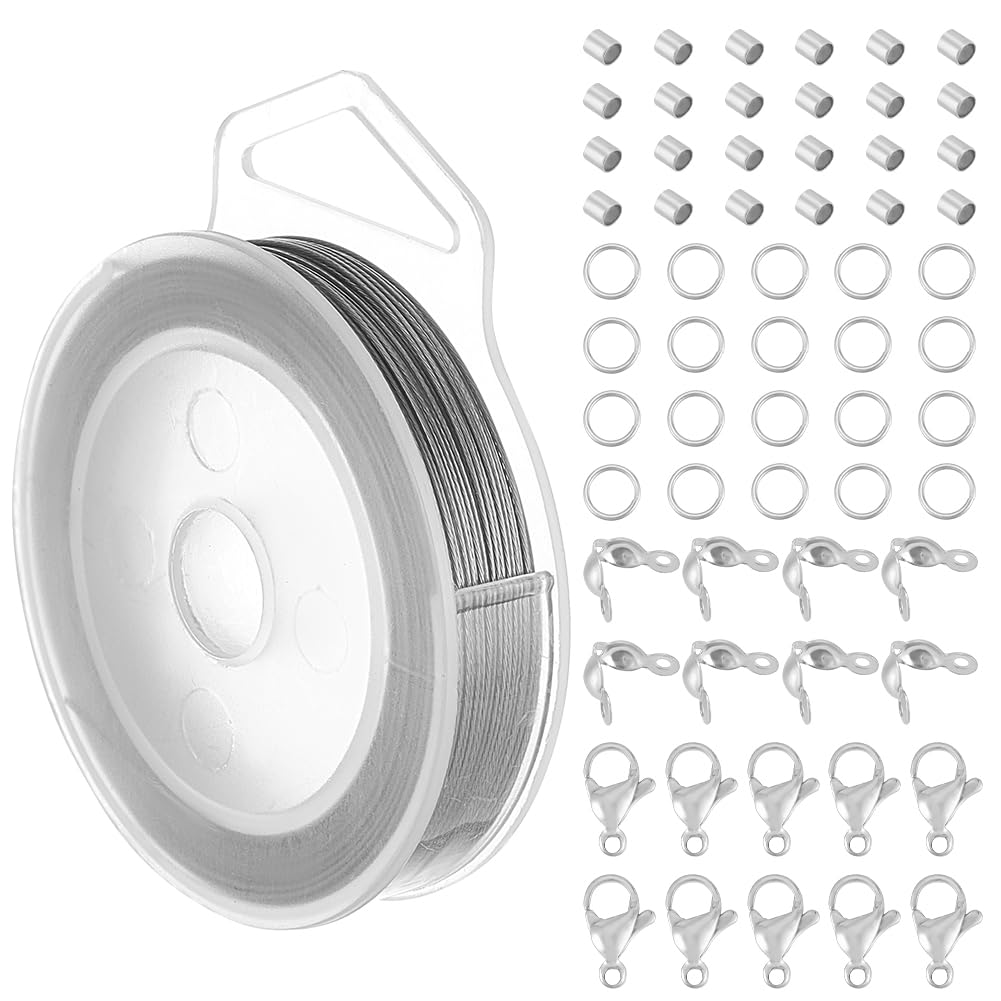 Stainless Steel Accessories: (1) 200 pcs 4.6mm Jump Rings, (2) 200 pcs 1.5x2mm Crimp Beads, (3) 30 pcs 11x7x3.5mm Lobster Claw Clasps, (4) 100 pcs 8x4mm Bead Tips with 1.2mm Hole, Save Time Finding Small Jewelry Accessories.