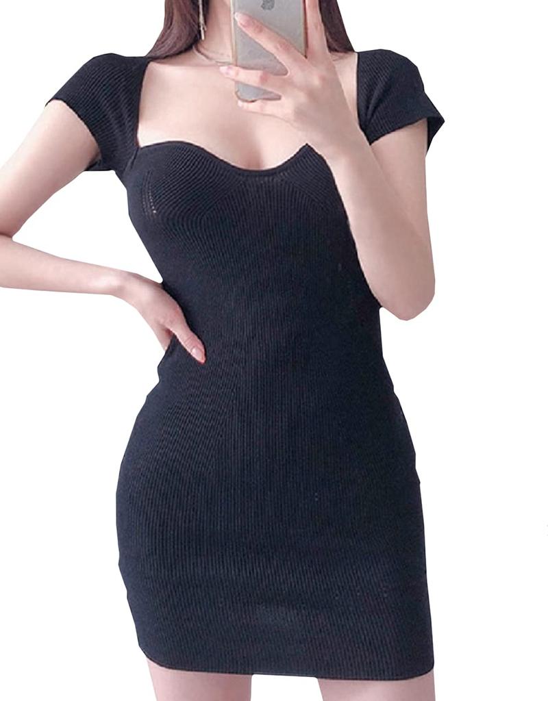 Coco Yuka Dress with Open Tight Short Short Lightweight Ribbed Knit & Women's Off-the-Shoulder Neckline, Sexy, Fit, Simple, Mini, Length, Casual,