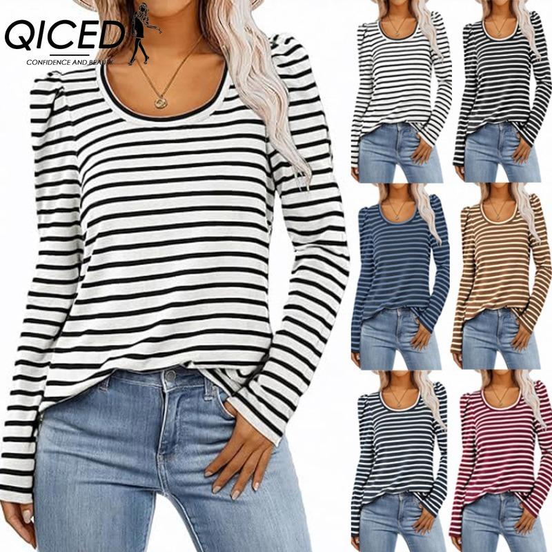 QICED Dámská móda Ležérní Blůzy a košile s dlouhým rukávem a kulatým výstřihem