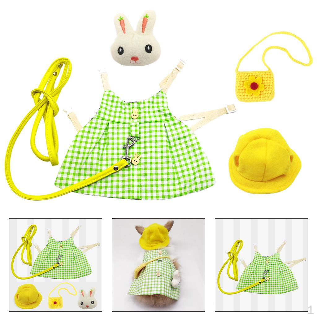 - Cute small pet dress set included a dress, a pet leash, a mini hat, a mini bag and a rabbit brooch.