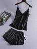 Sexy pajamas women's summer ice silk two-piece set silk suspenders shorts large size thin loungewear available
