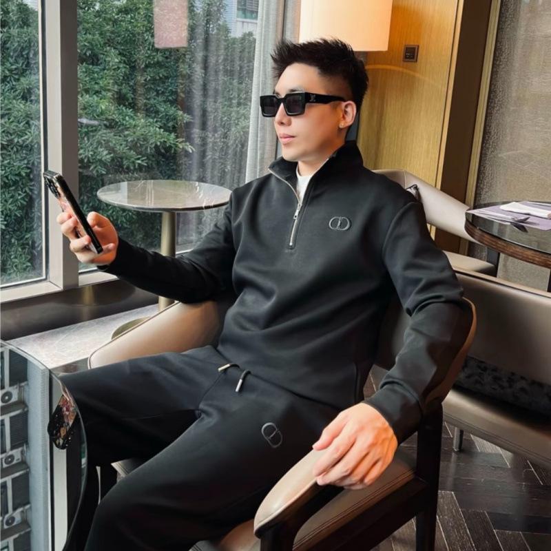 2025 Autumn Men's Embroidered Half-Zip Hoodie - Trendy and Fashionable Long-Sleeved Top