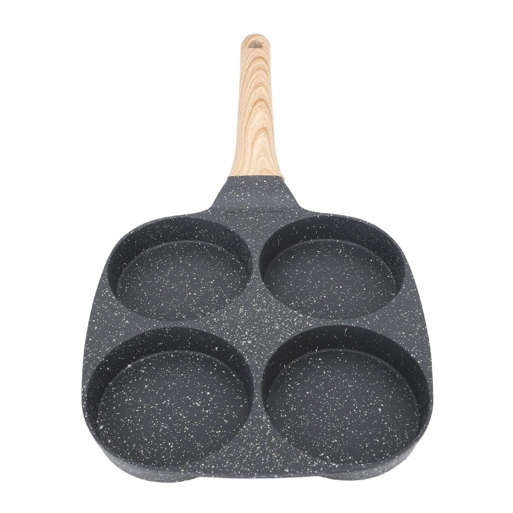 Aluminum 4 Cup Egg Frying Pan Non Stick Egg Cooker Pan Pancake Pan Easy Clean Wooden Handle For Gas Stove Induction Cookware