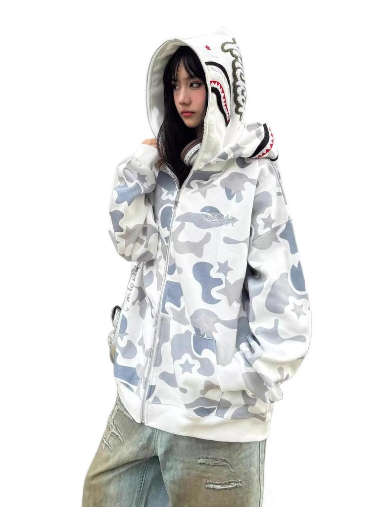 Tento unisex streetwear kardigan je navržen pro všestrannost a pohodlí, má dvojitou kapuci a zapínání na zip, které bez námahy kombinuje retro a vojenské vlivy.. Vyrobeno z lehkého polyesterového materiálu s volným střihem, je ideální pro přechodné počasí na jaře a na podzim.. Kamuflážní vzor dodává nádech drsného stylu, zatímco dlouhé rukávy poskytují dostatečné krytí.. Podšívka z polyesterových vláken zajišťuje měkký a útulný pocit, což z ní činí módní a funkční doplněk každého šatníku.