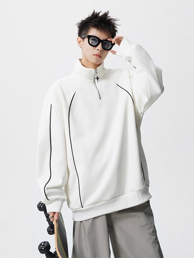 Men's 2025 Spring/Autumn Striped Color Block Half-Zip High-Neck Hoodie - Trendy Loose Heavyweight Top