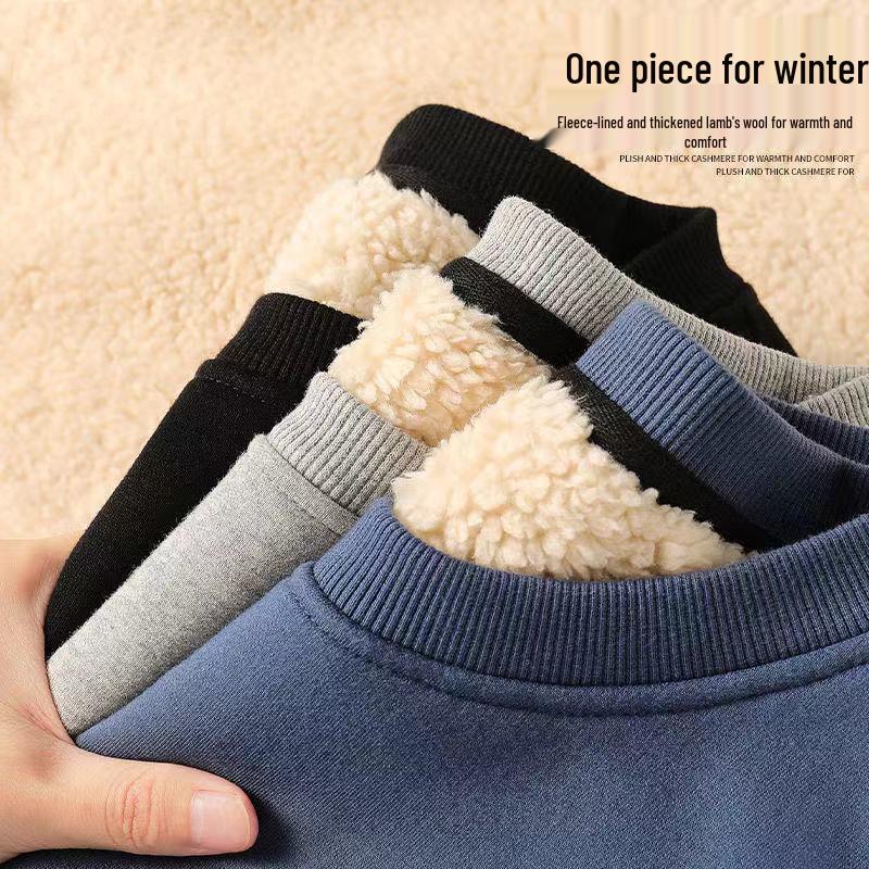 Experience exceptional warmth and style with this men's winter hoodie, designed with a youthful and modern appeal. Crafted from premium polyester material, the hoodie boasts a plush lambswool lining that ensures optimal insulation against the cold. Featuring a stand neckline and long sleeves, it provides full coverage and a contemporary look. The hoodie comes in a pure, solid color, offering a versatile wardrobe staple that effortlessly matches any outfit. Its loose fit allows for comfortable layering and is available in plus sizes to accommodate all body types. Ideal for those seeking a blend of fashion and functionality this winter season.