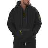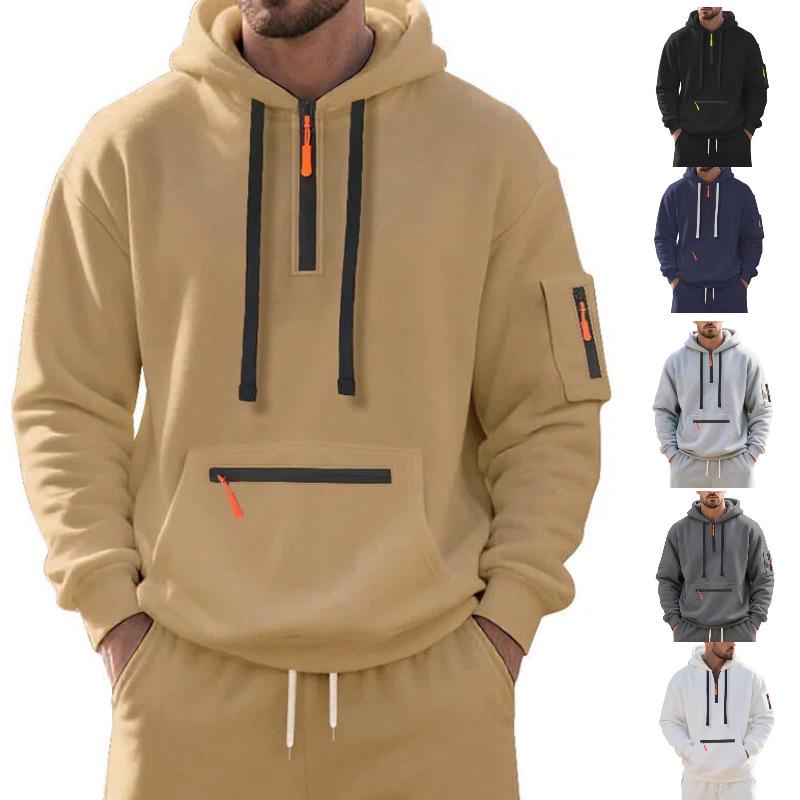 Elevate your cold-weather wardrobe with this versatile hooded pullover sweatshirt, perfect for autumn and winter. Designed with a stand neckline and long sleeves, it ensures both style and comfort. The thickened velvet lining provides added warmth, while the casual sportswear design delivers a loose fit for ultimate ease of movement. Crafted from high-quality polyester fiber, this solid-patterned sweatshirt offers durability and a soft feel against the skin. Complete with convenient pockets, it's a practical and stylish addition to any casual outfit.