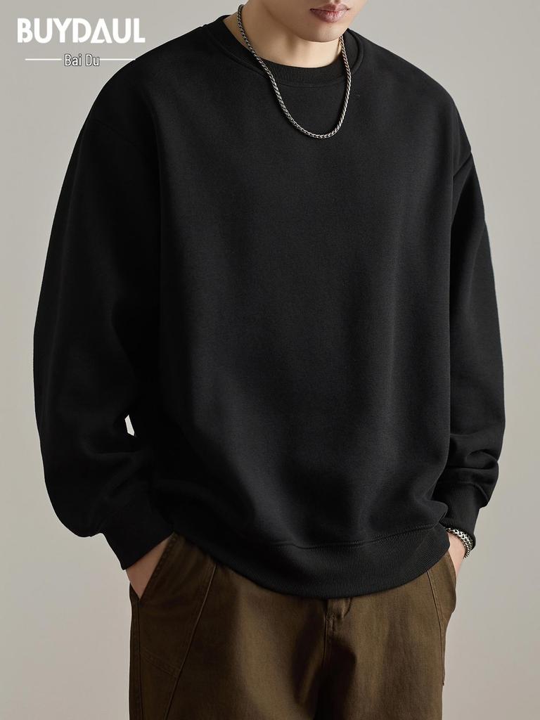 Men's American Style Heavyweight Crewneck Sweatshirt - New Autumn Arrival, Trendy, Loose, Solid Color, Versatile Casual Base Layer.