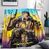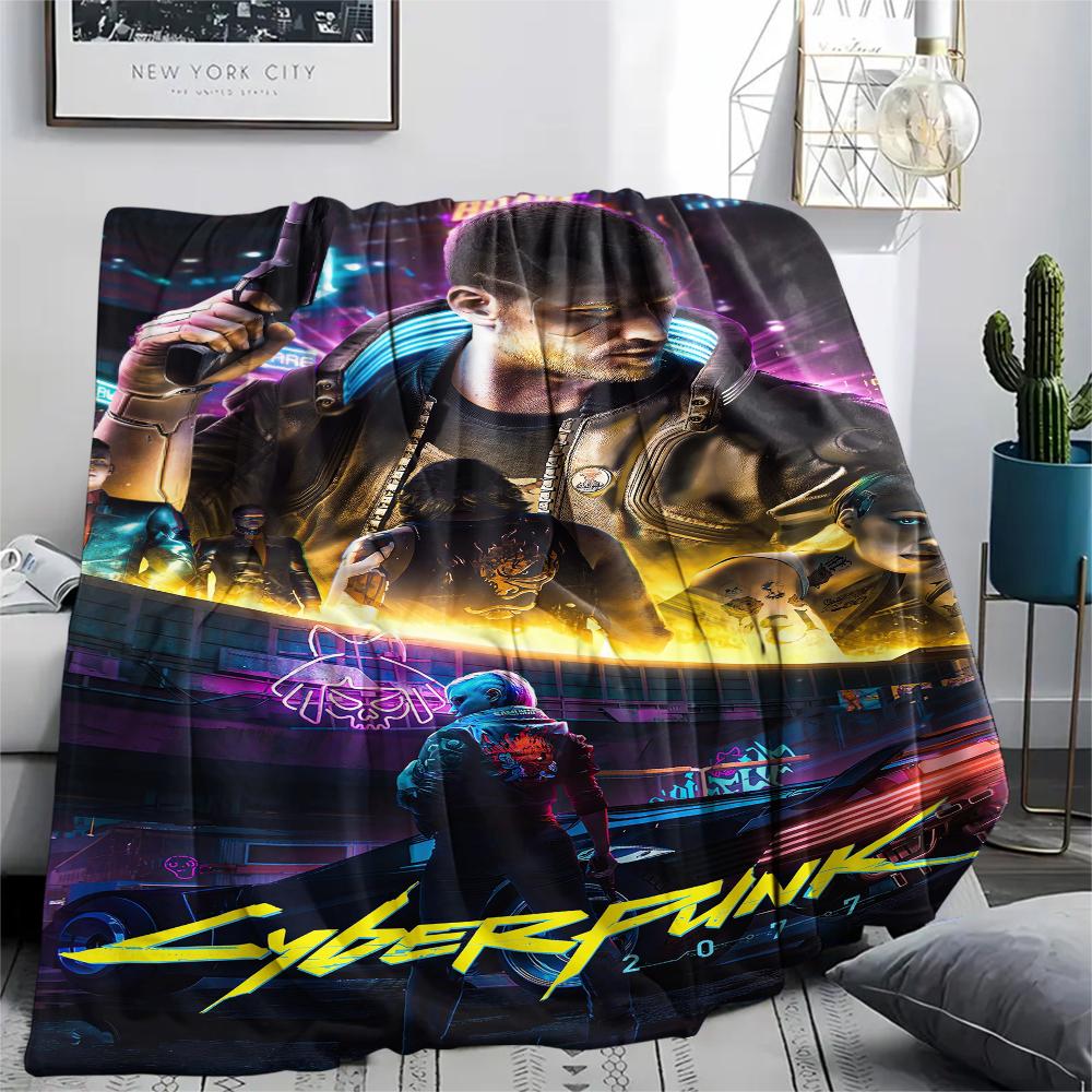 1Pc Cyberpunk Print Flannel Blanket, High quality Comfortable for All Seasons, Home Decor, Warmth and Comfort, Perfect for Christmas Gifts