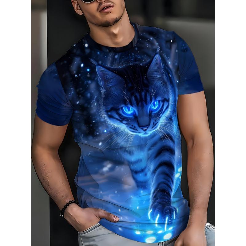 Men's Creative Cat Play 3D Printed Round Neck Short Sleeve, Casual Daily T-shirt, Summer Outdoor Activities Men's Clothing