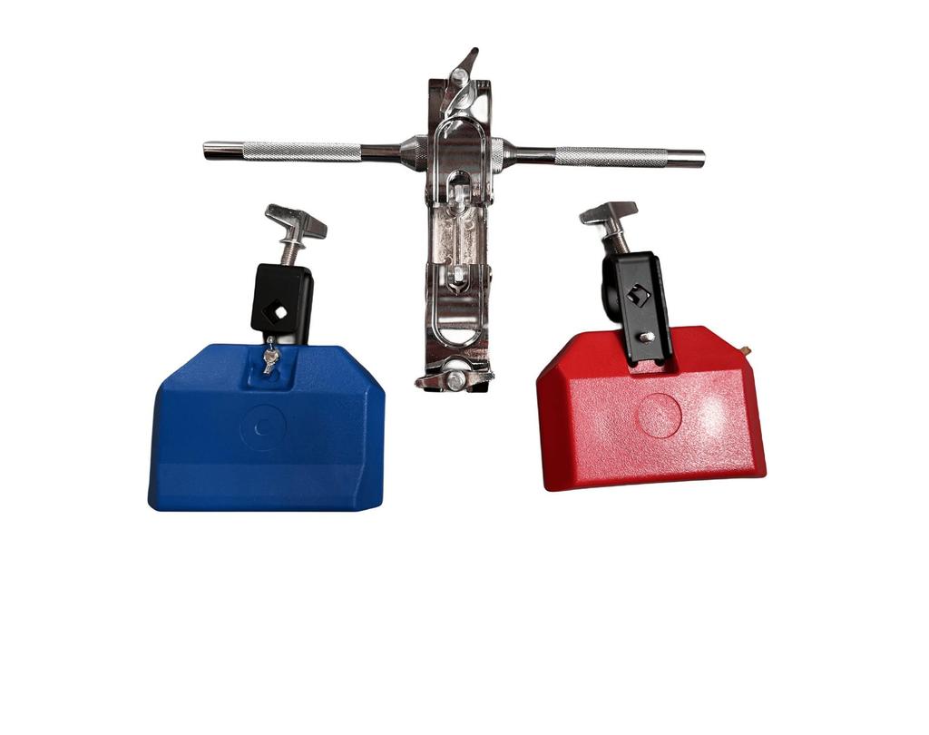 Plastic and Wooden Percussion Set: Clappers, Cowbells, and Holder