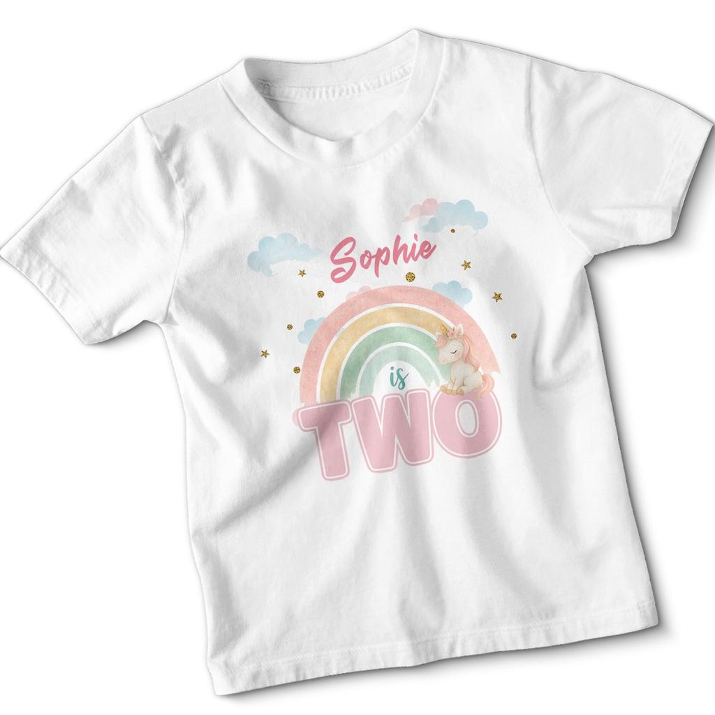 Personalised Unicorn Rainbow 2nd Birthday Girls Kids T-Shirt Is Two Custom