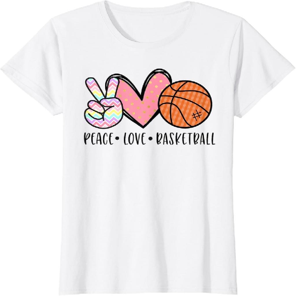 Peace Love Basketball Heart for Women Teens Tween Girls T-Shirt