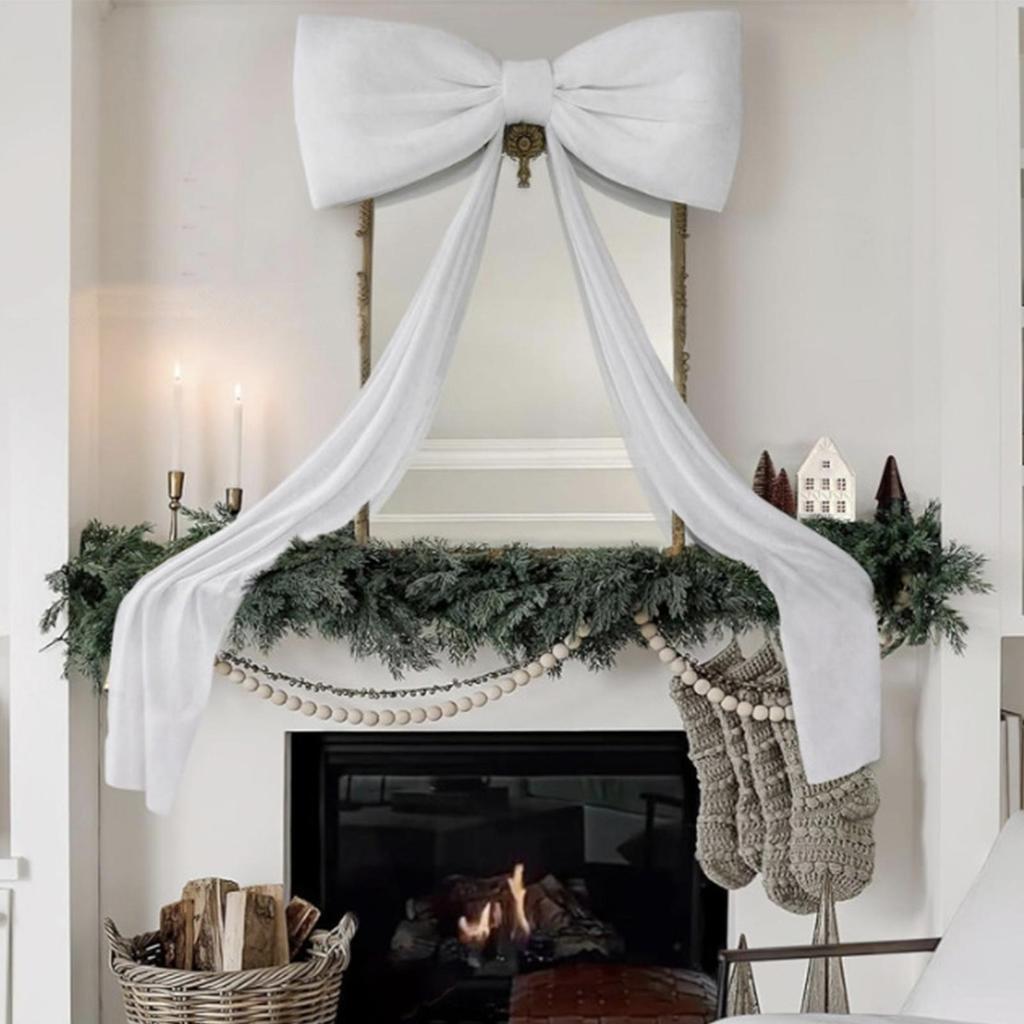 Christmas Bow Topper 70.8 Inches Large Velvet Festive Decorations Decorative Bow For Living Room Entryway Party Mantel Wall