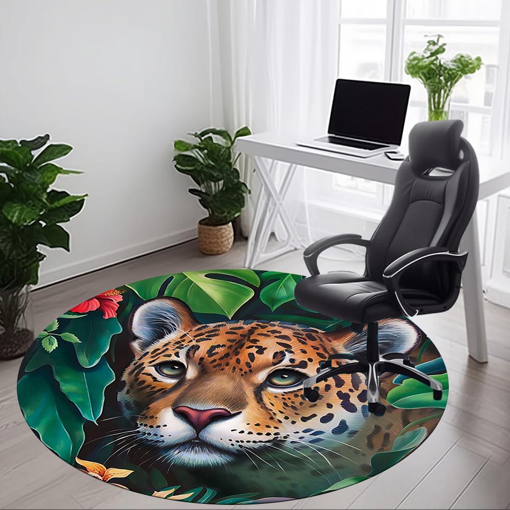 1pc Jaguar Print Carpet for Office Non Slip, Round Carpet, Soft & Comfortable, Carpet for Office, Lightweight Round Floor Mat