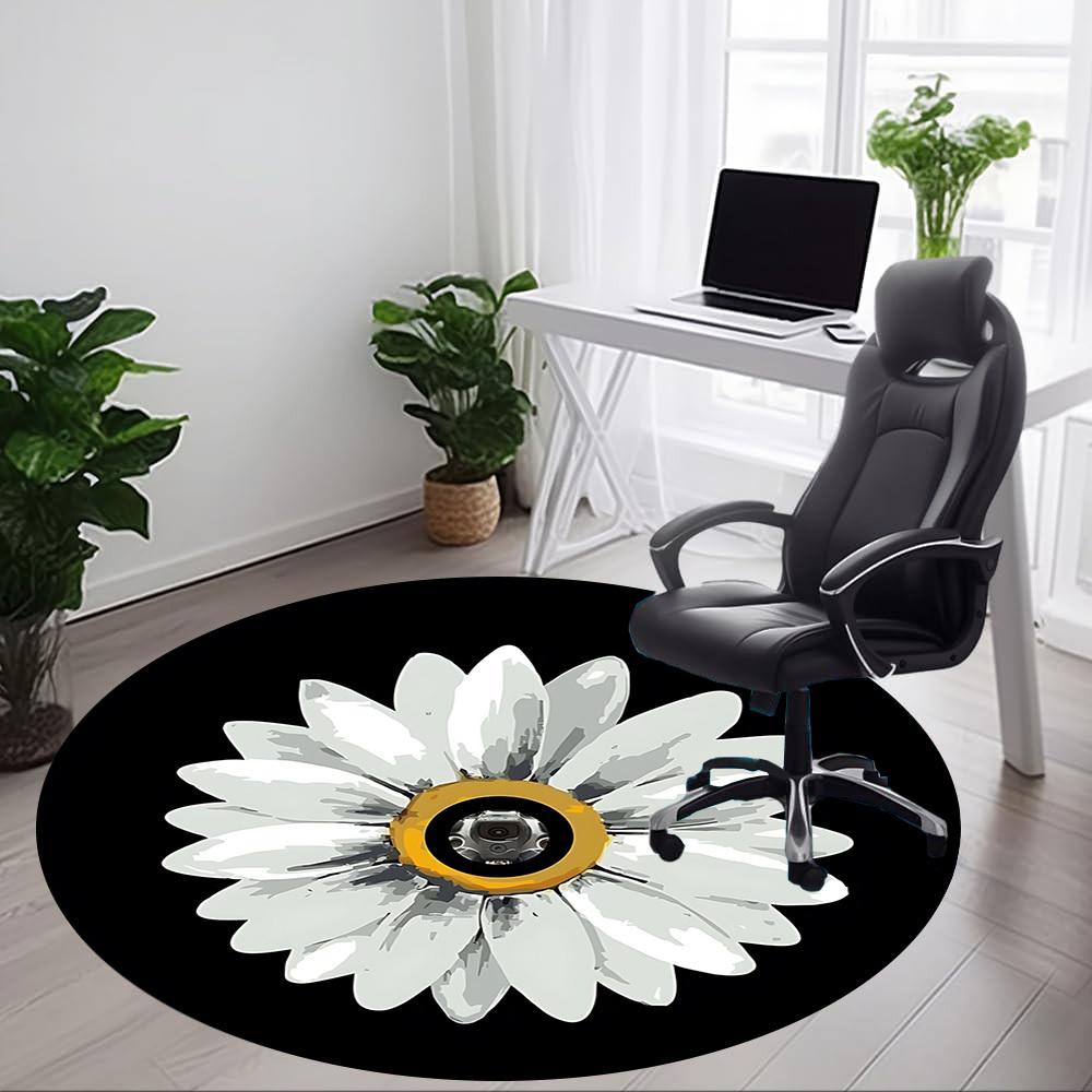 1pc Daisy Flower Print Carpet for Office Non Slip, Round Carpet, Soft & Comfortable, Carpet for Office, Lightweight Round Floor Mat