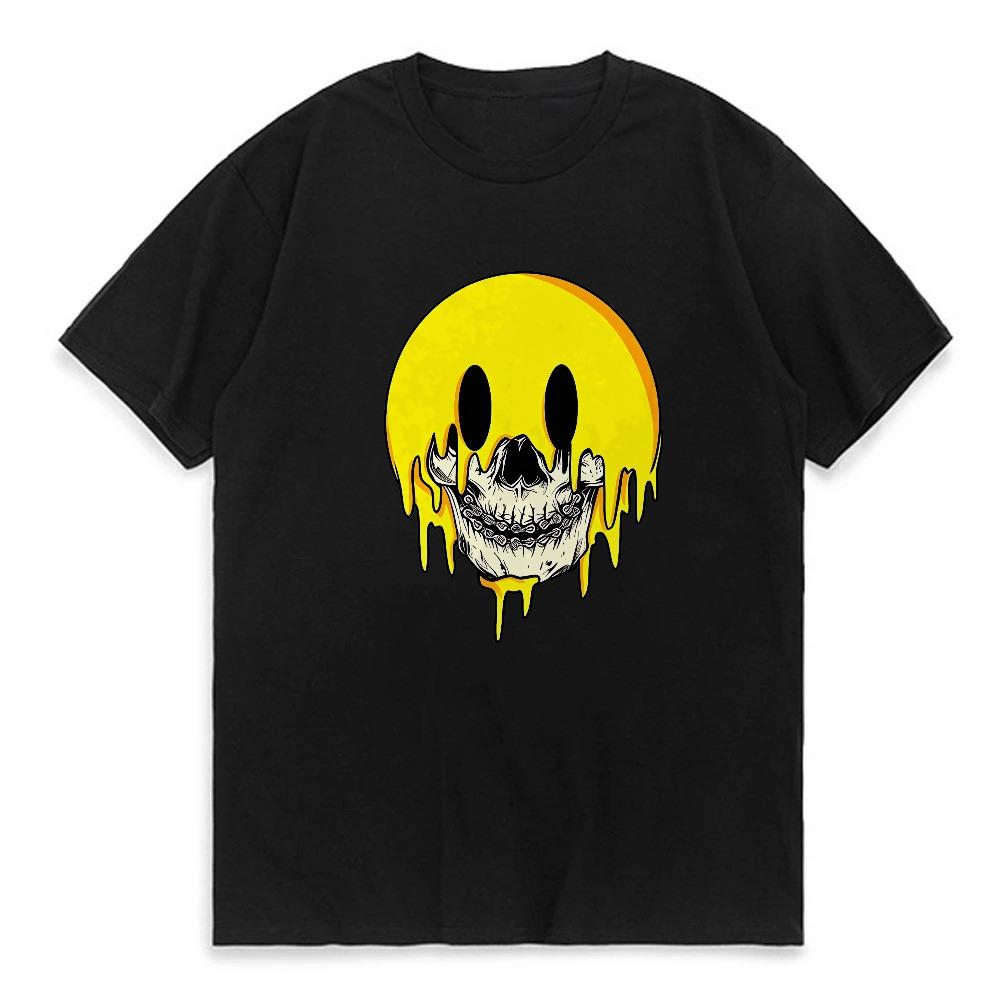 Skeleton smiley face print pattern Tshirt for Summer Mens and Womens Beach Travel Comfortable and Breathable tees oneck tee