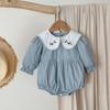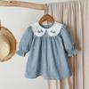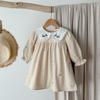 Šaty s výšivkou na límci s dlouhým rukávem a body set v korejském stylu pro holčičky