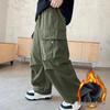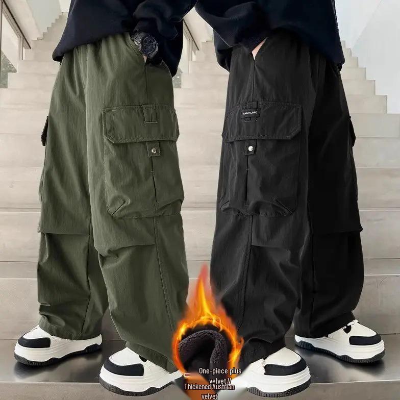 Boys' Stylish Autumn/Winter 2025 Versatile Cargo Pants - Medium/Large, Loose Fit, Plus Velvet Long Trousers