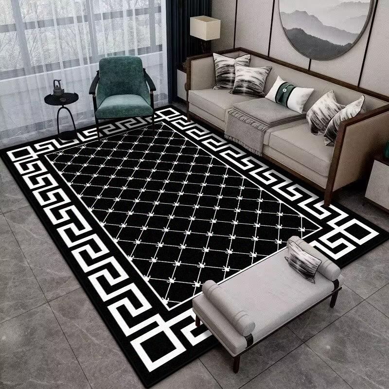 Moderní Jednoduchá Domácí Podložka Měkký Luxusní Koberec do Obývacího Pokoje Protiskluzový Ložnicový Luxusní Dekorace Černý Plošný Koberec Podložka na podlahu