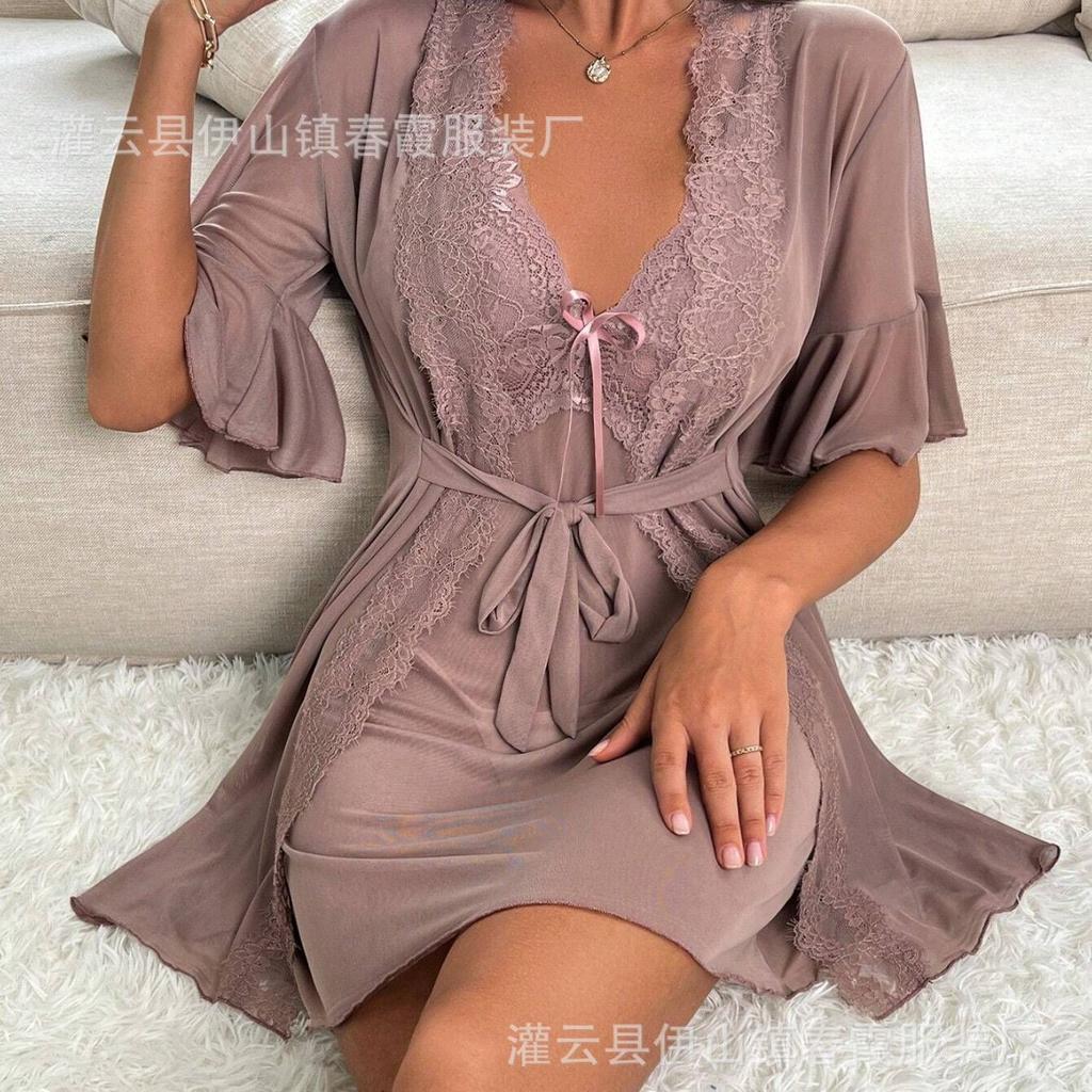 Sexy women's sexy lingerie, uniform seduction lace bow loungewear see-through