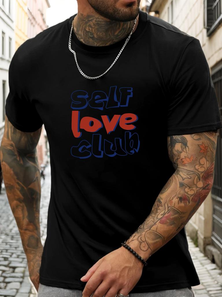 Short Sleeve TShirt Self love club Mens 100 Cotton Pattern Printed Shirt Summer Round Neck Breathable Casual Fashion Cool Tee