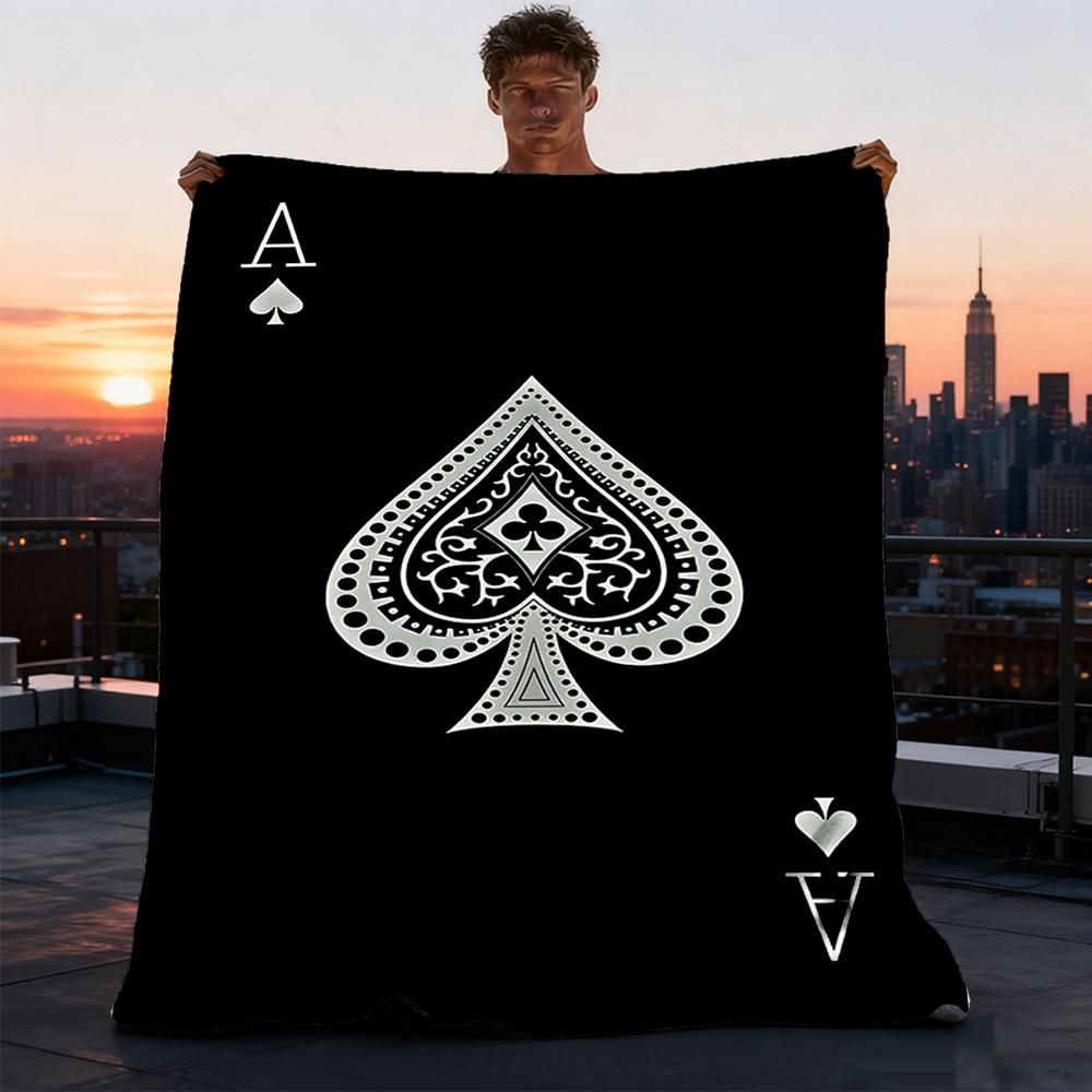 1pc Ace of Spades Playing Card Outdoor Flannel Blanket , Machine Washable Perfect Gift for Birthday , Holiday Travel Accessory , Durable Material