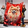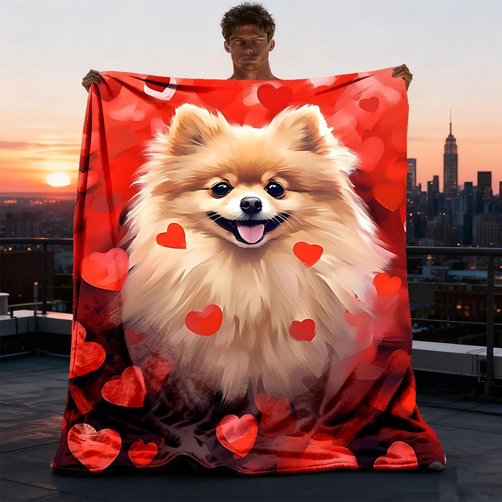 1pc Pomeranian Love Hearts Outdoor Flannel Blanket , Machine Washable Perfect Gift for Birthday , Holiday Travel Accessory , Durable Material