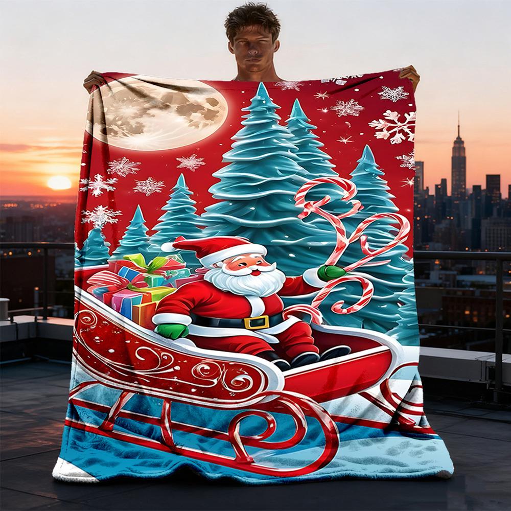 1ks Vánoční Santa Claus Venkovní flanelová deka Měkká celoroční polyesterová přehoz , Perfektní pro pikniky a cestování , Piknikové příslušenství