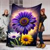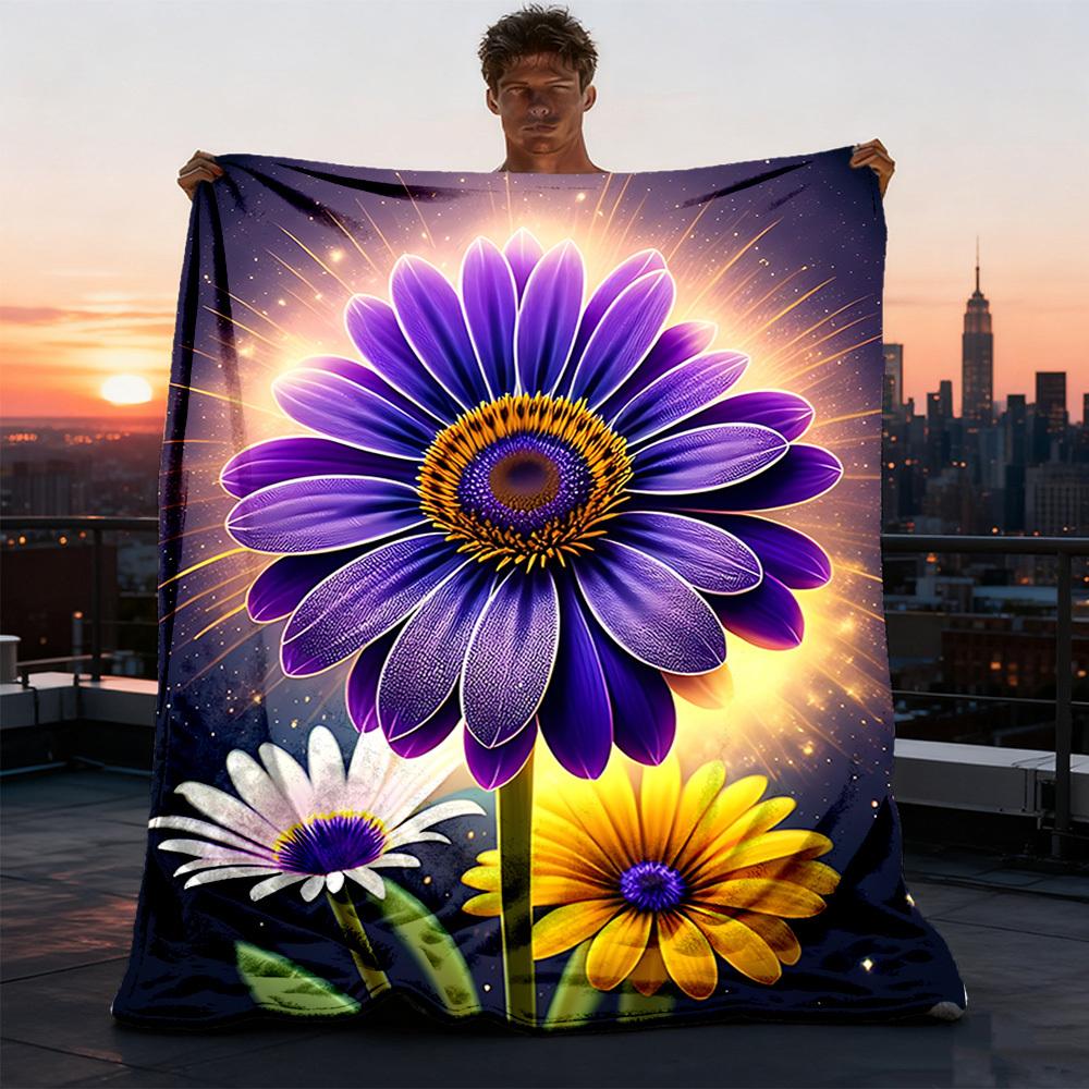 1pc Purple Daisy Outdoor Flannel Blanket Soft All Season Polyester Throw , Perfect for Picnics & Travel , Picnic Accessory
