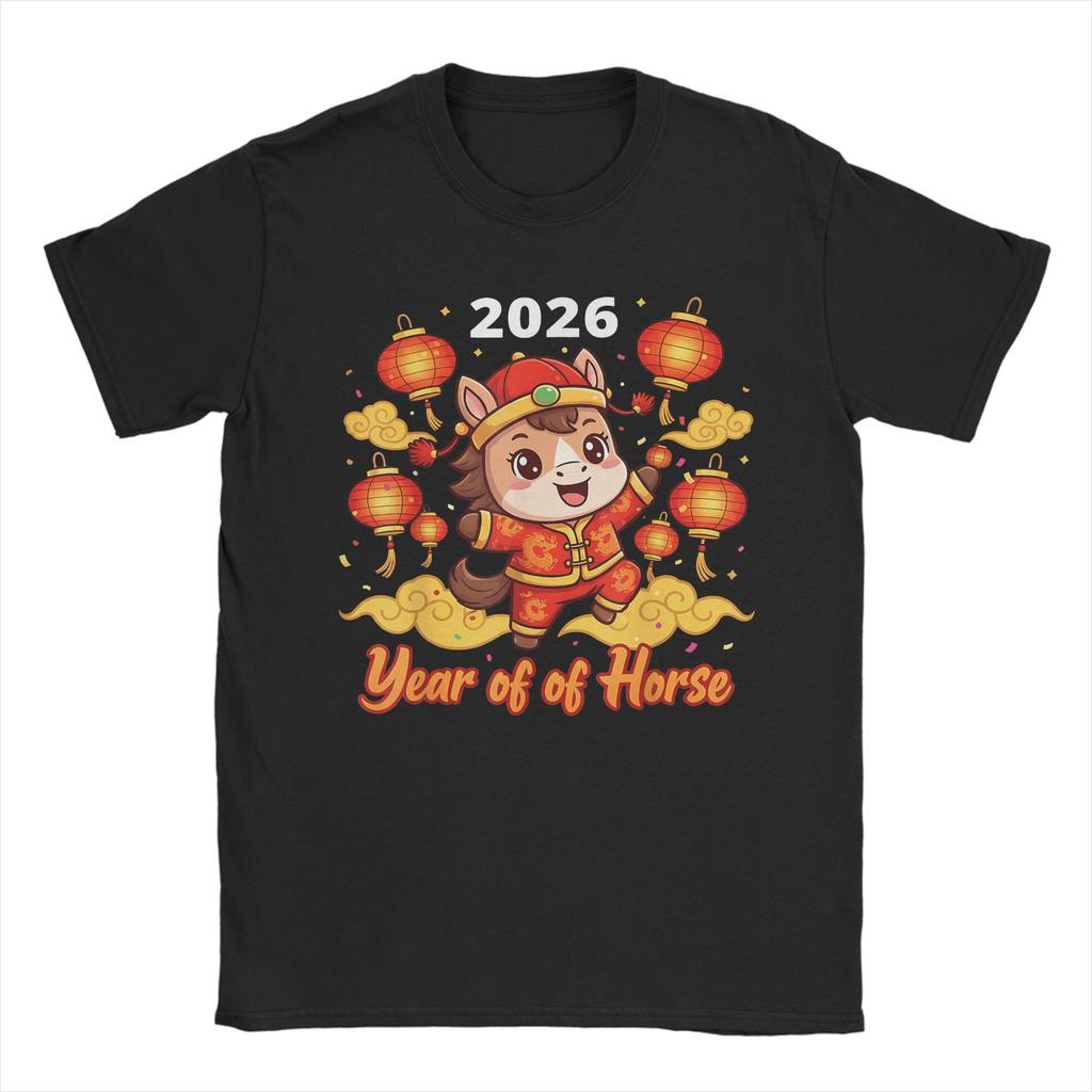 Casual TShirt Beach New Year 2026 Horse Happy Chinese New Year 2026 Hippie T Shirts Cotton Tee Shirt for Men Y2K Clothing