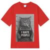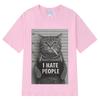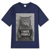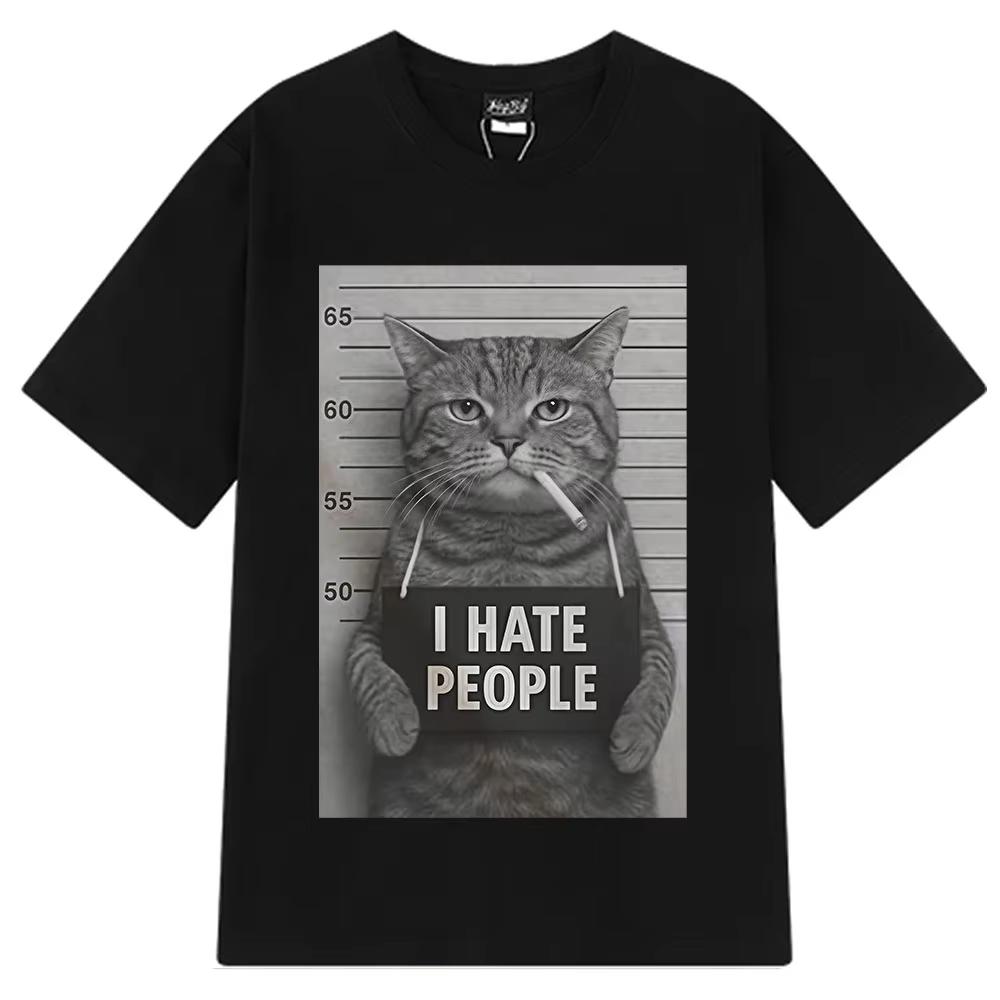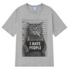 I Hate People Meow Print Tshirt Fun Cat Print T Shirts Men Women Loose Short Sleeve Clothing Harajuku Cotton Casual Tshirts