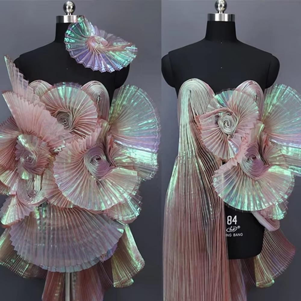 Creative Shiny Pleated Organza Fabric Rainbow Mermaid 100*150cm Cloth Fabric Handmade DIY Material Sewing Girls Skirt Dress