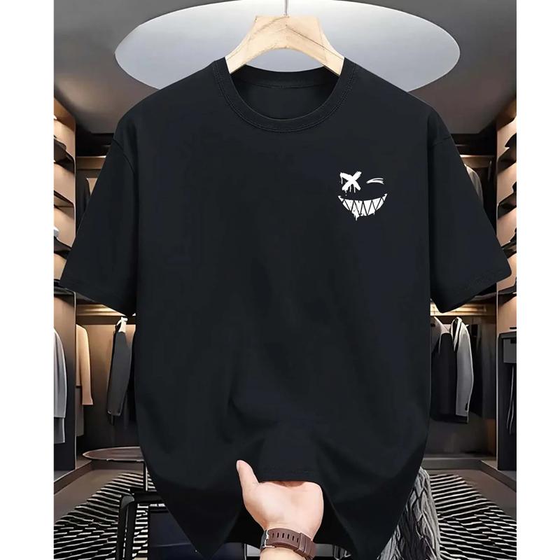 Mens summer 100 pure cotton fashionable casual loose personality smiling face pattern printed round neck short sleeved Tshirt