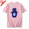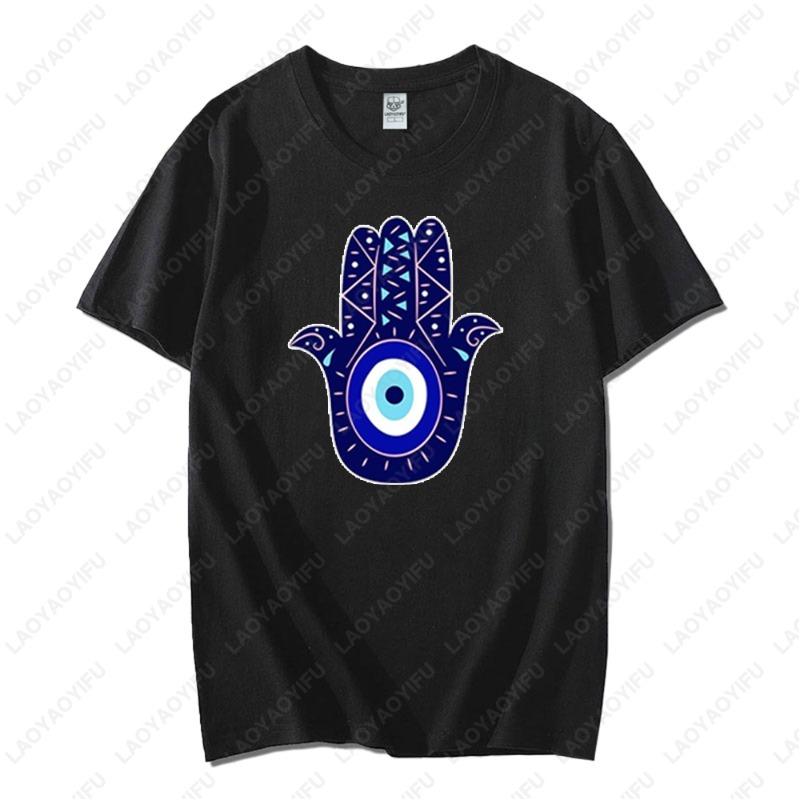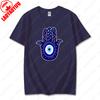 Men Women Hamsa Hand TShirt with Blue Eye of Protection Design Tee Unique Creative Graphic Print Cotton Casual Unisex Tops Gift