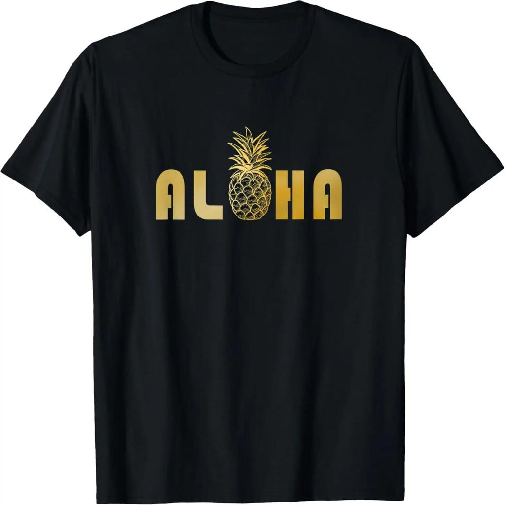 Gold Aloha Pineapple T Shirt - Golden Hawaiian Greeting T-Shirt