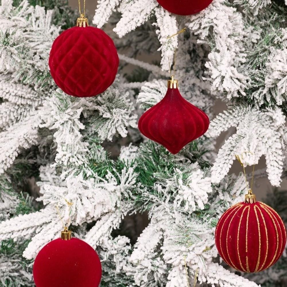 6Pcs/Box 8CM Velvet Christmas Hanging Balls DIY Plastic Christmas Tree Ornament Christmas Flocked Ball Set Holiday Celebration