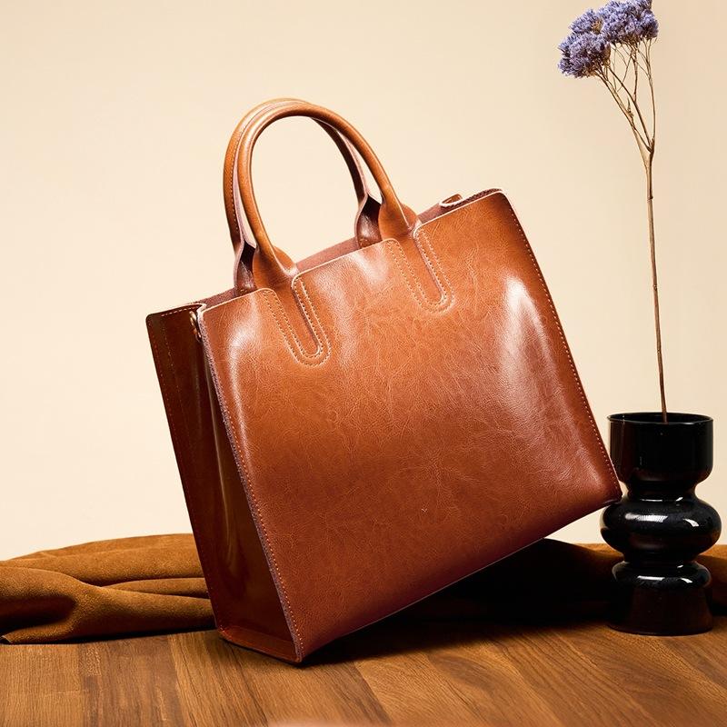 Přeshraniční všestranná voskovaná hovězí kůže ramenní tote taška pravá kůže nová pro notebook dámská velkokapacitní kabelka