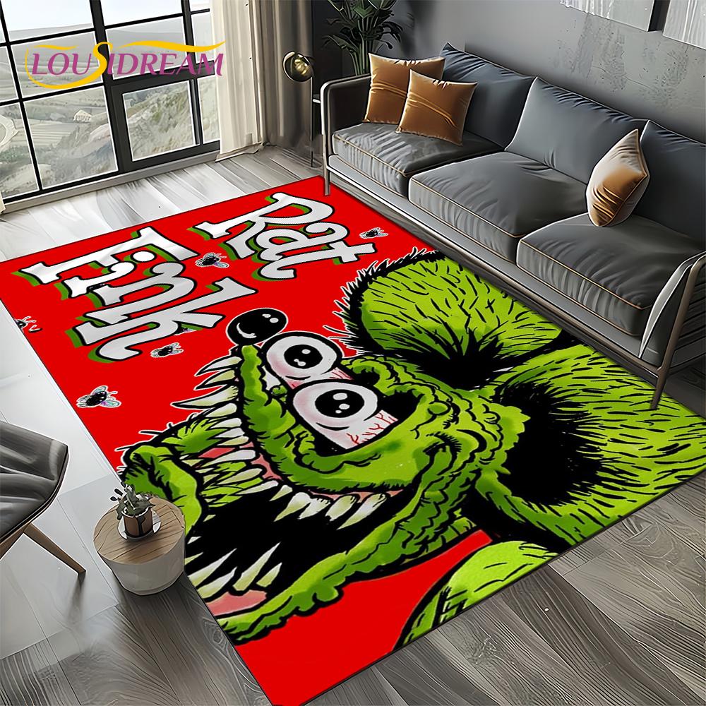 RF Funny Rat Fink Cartoon Motorcycle Sign Carpet Rug for Living Room Bedroom Home Sofa Decoration,Area Rug Non-slip Floor Mat
